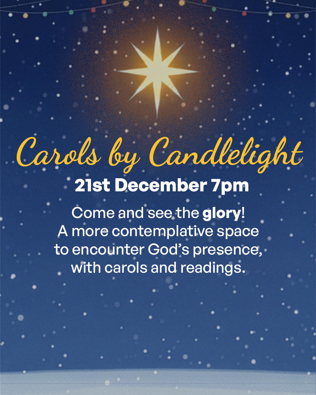 Come and encounter God's glory. An evening service with carols to sing to, and readings to remind us of the journey of Christ to this world.
