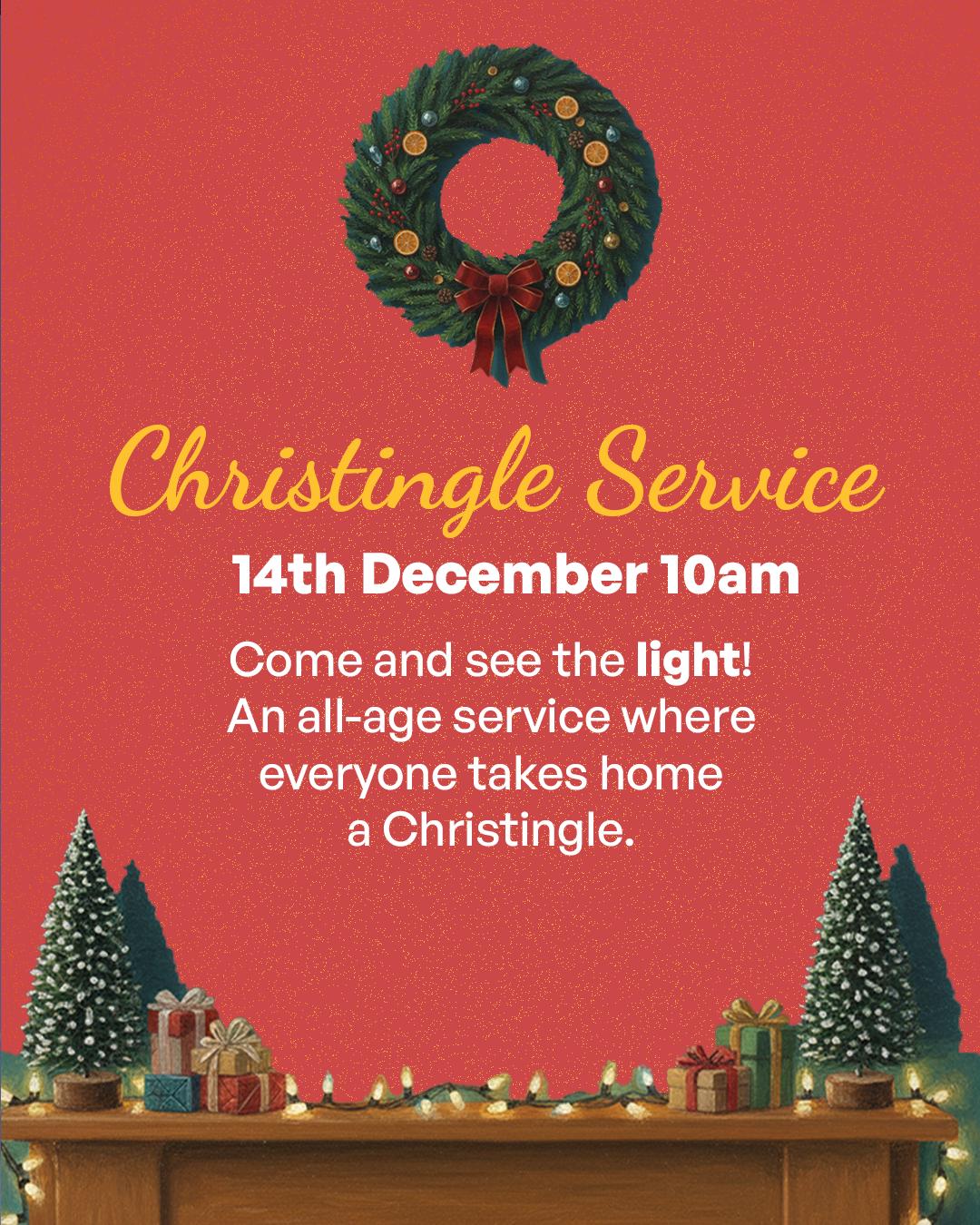 A classic Christmas service! Come and make a Christingle, hear the Christmas story and share in a time of celebration, from the youngest to the oldest in our community.
